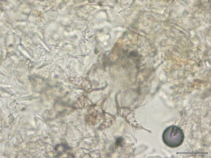 この削れた皮膚を顕微鏡で見てみましょう。どれどれ。